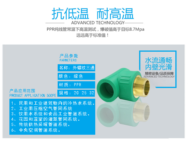 □  管件連接牢固:由于聚丙烯具有良好的熱熔接性能,熱熔連接將同種材料制造的管材和管件連接成為一個(gè)整體,杜絕了漏水的隱患。
