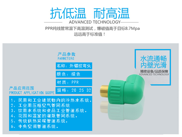 □ 配套齊全:PPR管道系統(tǒng)配套齊全,可以解決室內(nèi)和小區(qū)給水管道的工程配套要求。